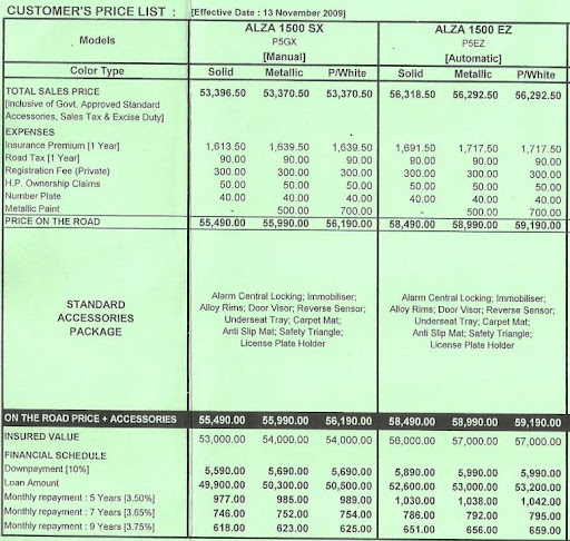 The Perodua Alza price range are as follow: