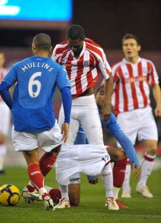 Portsmouth's Kevin-Prince Boateng pulls on Stoke City's Salif Diao's shorts